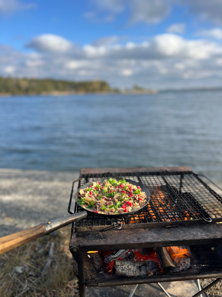 Hos Siggesta gård kan man nu boka förrätt utomhus där jag lagar Langos med toppings över eld. Regelbundet håller jag i events för vuxna och barn och nu senast hade vi en underbar sensommarvandring med sopplunch vid havet. Brödbak över eld och efterrättspaj med kokkaffe lämnade ingen hungrig. Nu är även säsong för konferenser och för de modiga så lagar jag utomhusmat tillsammans med dom, bilden är från senaste dukningen när jag lagade mat med redovisningsfirman Esencia.