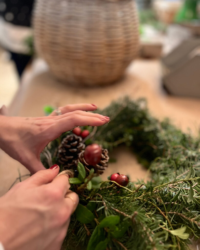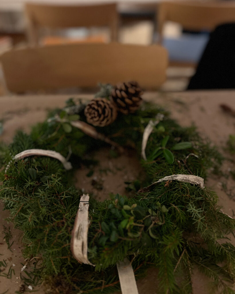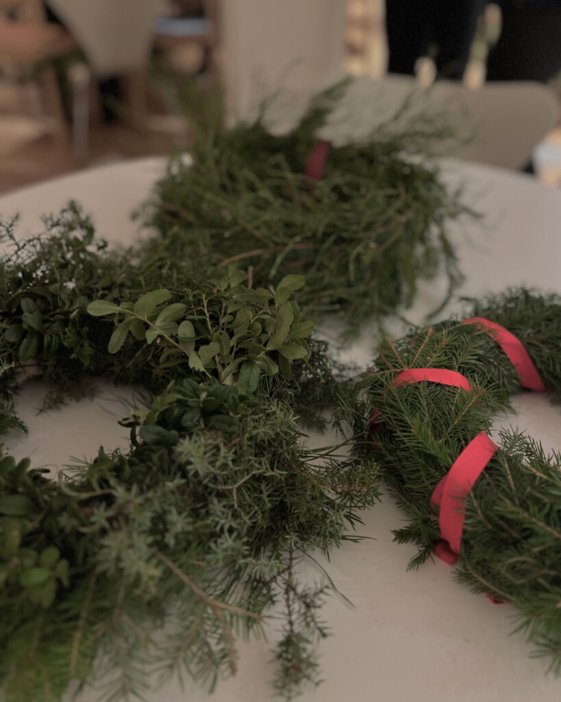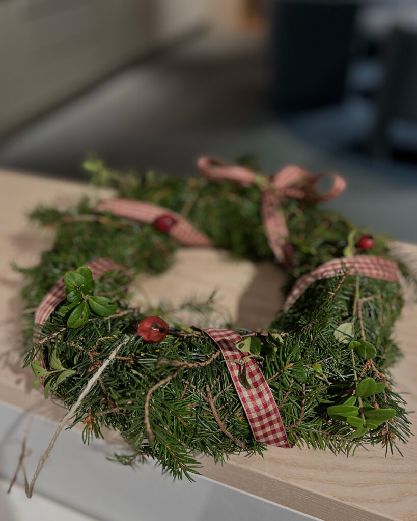 När ett forskande läkemedelsbolag önskar ha en workshop i kransbindning med personalen inför jul tar jag med skogen till stan. Det blev några timmars kreativt skapande och julfikande. Så mysigt!