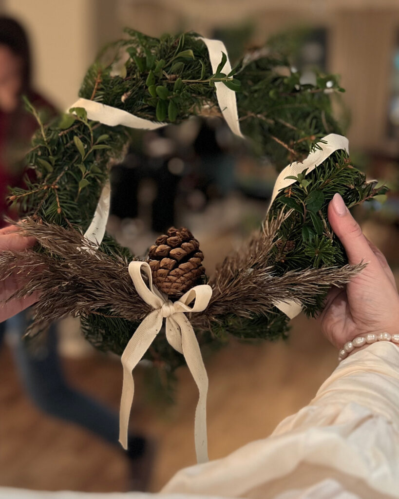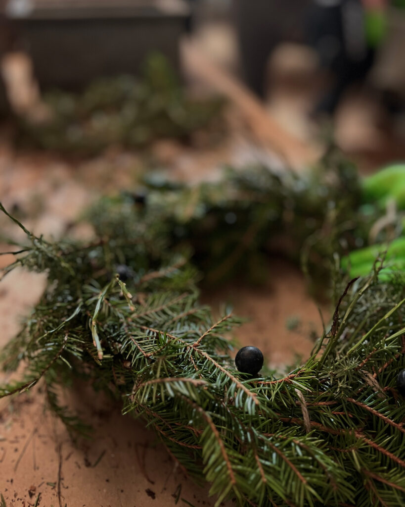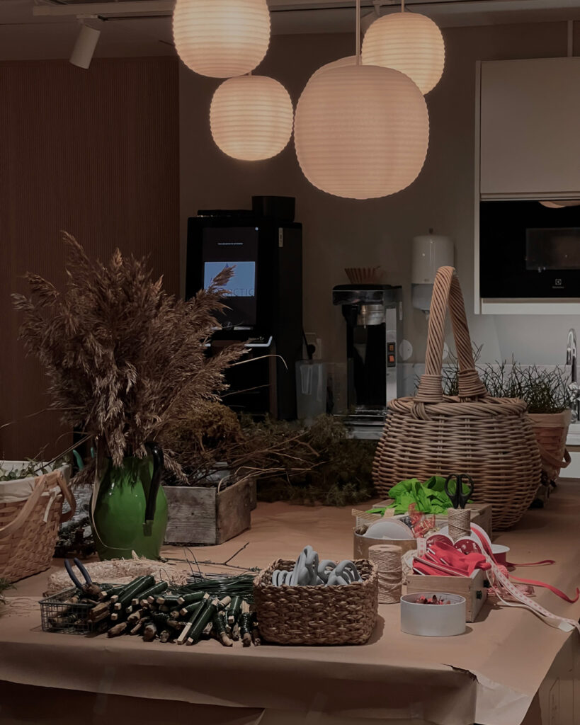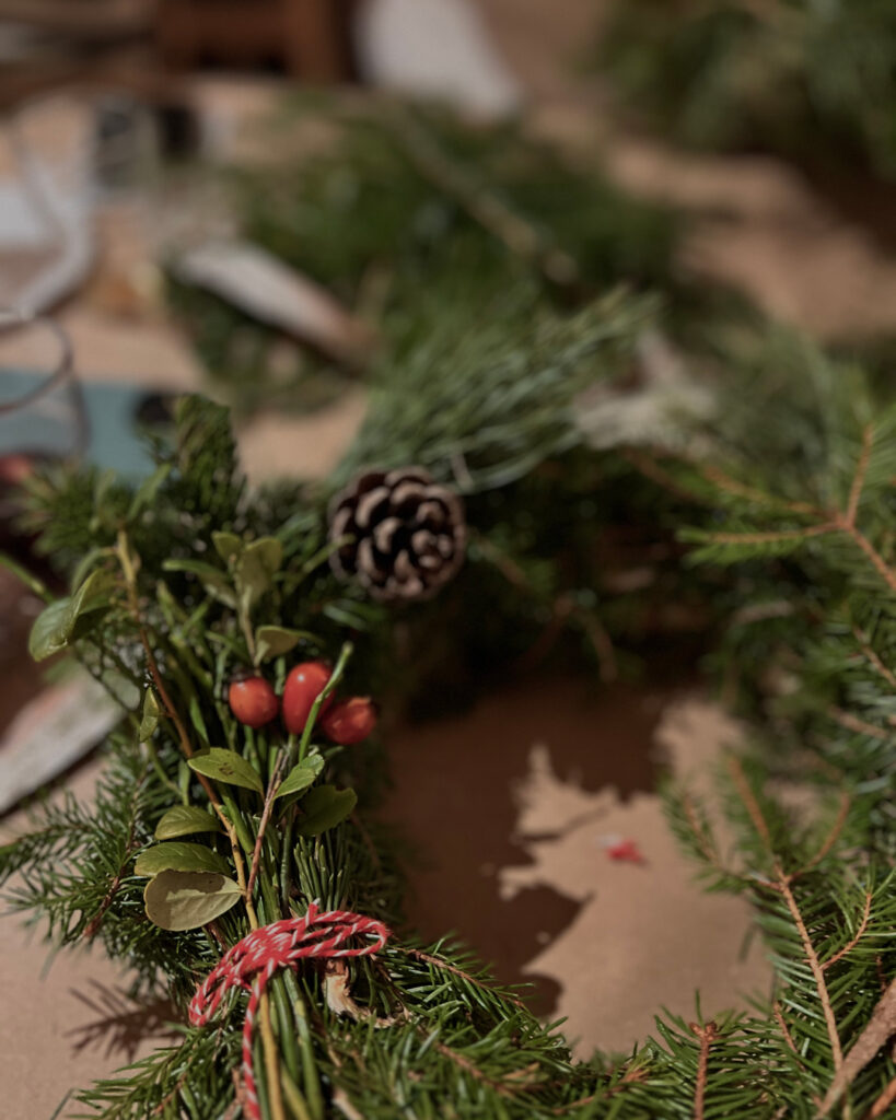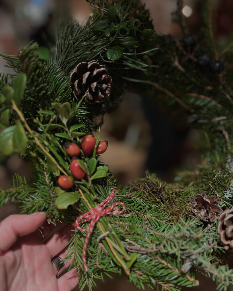 När ett forskande läkemedelsbolag önskar ha en workshop i kransbindning med personalen inför jul tar jag med skogen till stan. Det blev några timmars kreativt skapande och julfikande. Så mysigt!