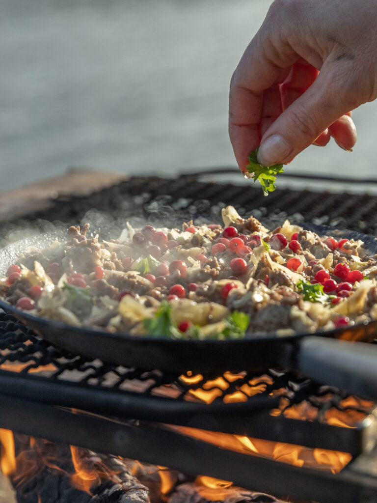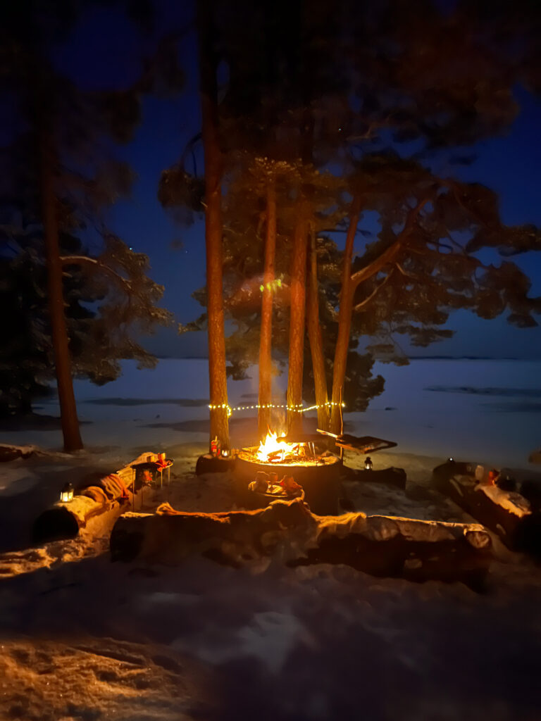 Det är en ynnest att få bli inbjuden som popup kock utomhus vid privata tillställningar. Denna gång en krispig februari kväll mitt i veckan vid en aktivitetsklubb som de grymma tjejerna bakom Skapa trädgård håller i på Smedjetorpet på Ingarö vid Återvallssjön. Jag bjöd på snacks i form av skogsthé, hembakat fröknäcke, grillade oliver, renhjärta från Borgafjäll och svensk ost i stavar.